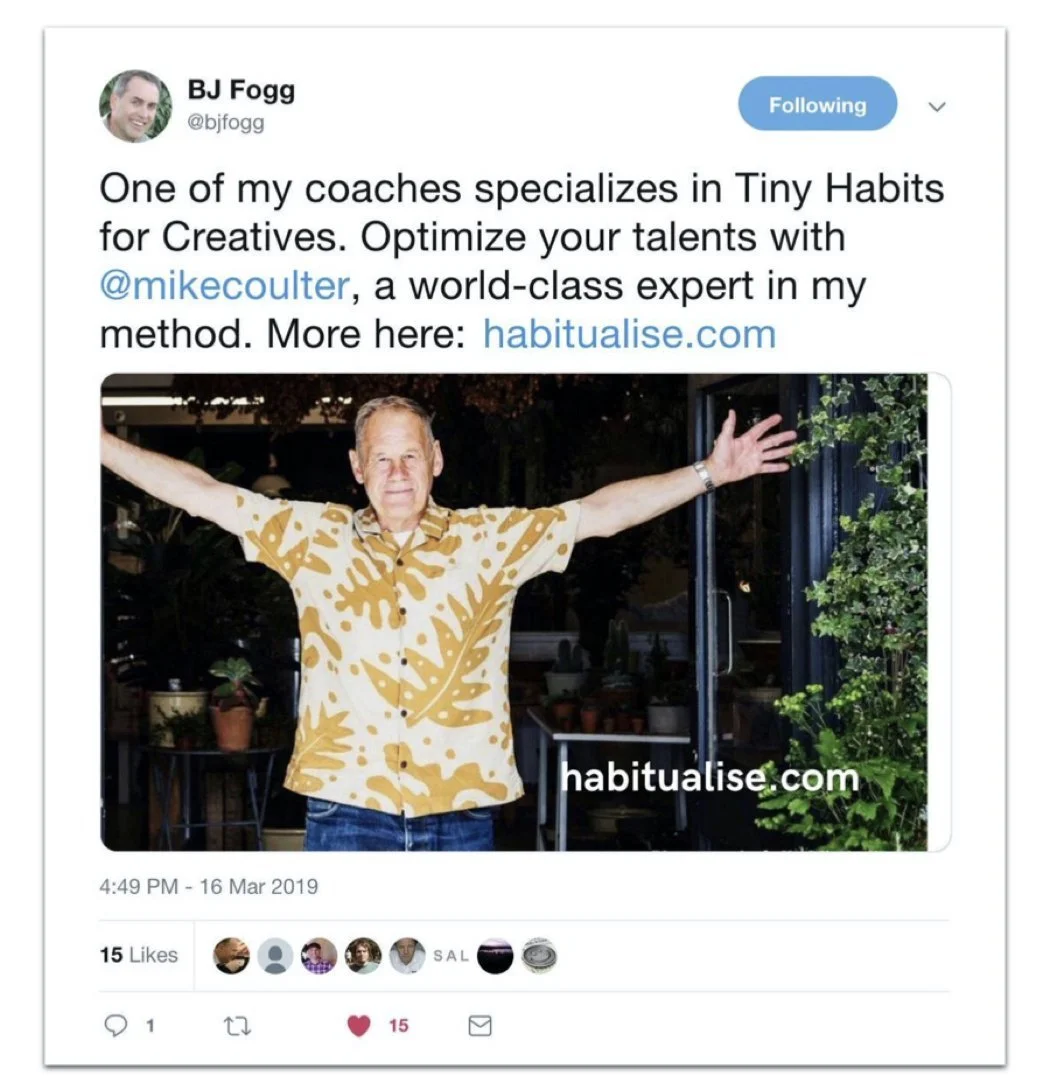 Mike will personally coach up to 10 of your key employees in the Tiny Habits® Method, at no cost. It only takes one hour of their time.